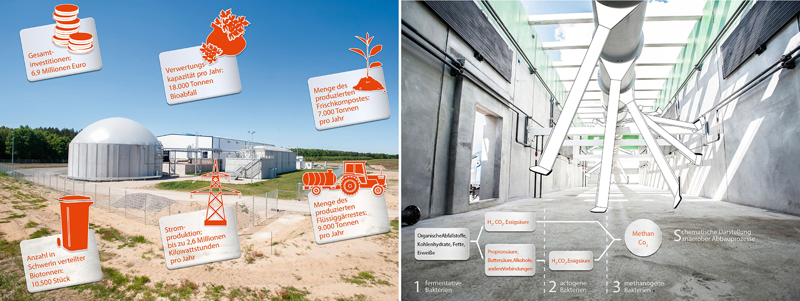 Die 2014 errichtete Bioabfallverwertungsanlage der SAS (BAVA) liegt am westlichen Rand des Gewerbegebietes „Industriepark Schwerin“. Kernstück der Anlage ist ein moderner Pfropfenstromfermenter aus Stahlbeton, in dem die Vergärung der angelieferten Bioabfälle erfolgt. Vier Mitarbeiter produzieren hier jährlich etwas 7.000 t Frischkompost und 9.000 t Flüssiggärrest für die Landwirtschaft. Aus dem dabei anfallenden Biogas werden im gleichen Zeitraum bis zu 2,6 Mio. Kilowattstunden Strom erzeugt, womit der Bedarf von mehr als 650 Vier-Personen-Haushalten gedeckt werden kann.