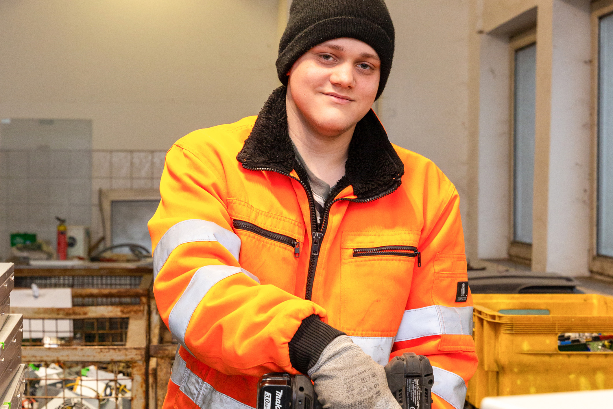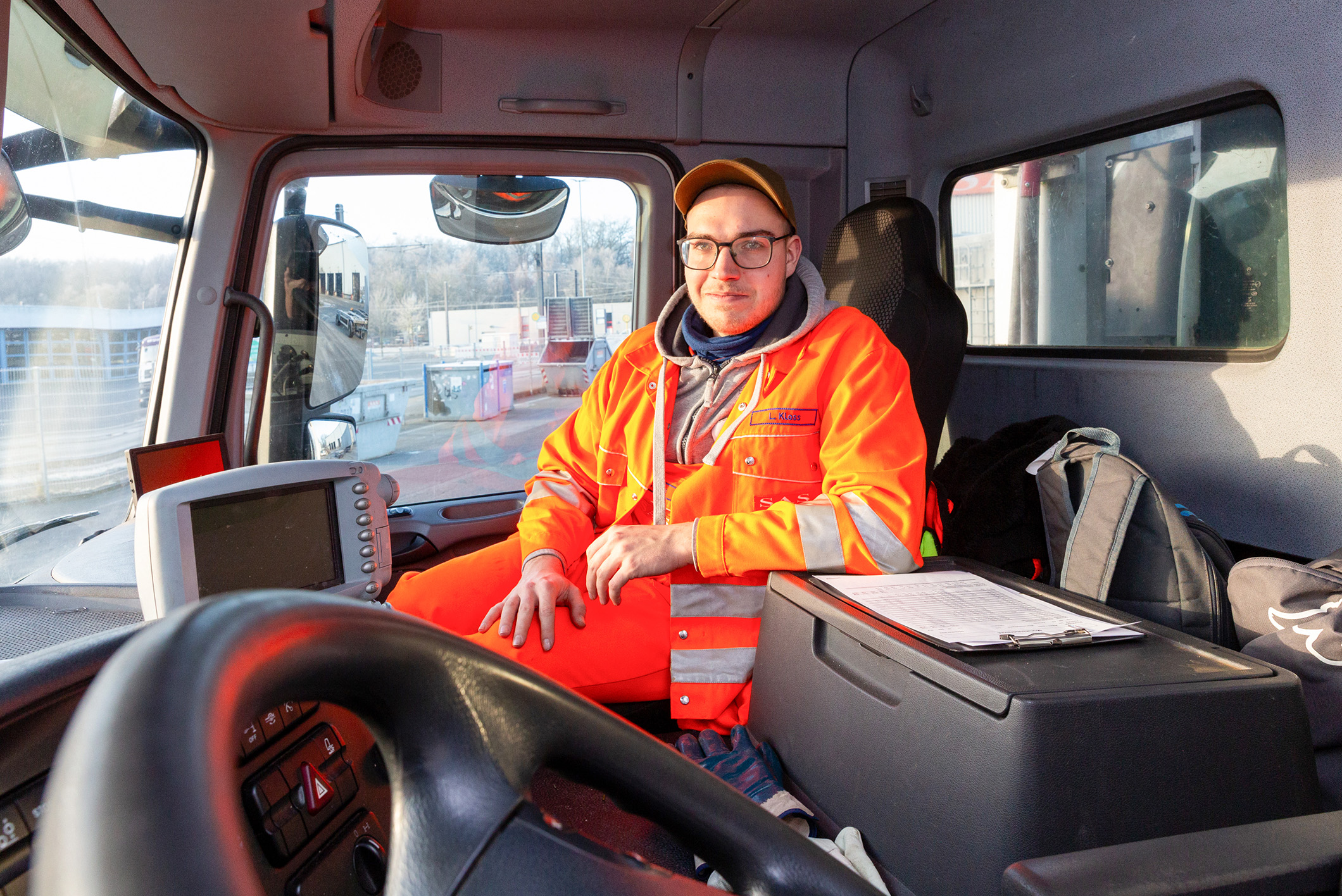 Für Fritz Keller geht die Ausbildungszeit langsam zu Ende. Er ist im dritten Lehrjahr und hat alle Unternehmensbereiche, wie die Buchhaltung, den Wertstoffhof und die Disposition, kennengelernt. „Mir gefällt hier vor allem die gute Arbeitsatmosphäre“, erklärt der 25-Jährige.